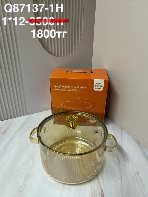 Q87137-1H Стеклянная кастрюля вертикальным узором 3,5 обьемом (1к-12шт)