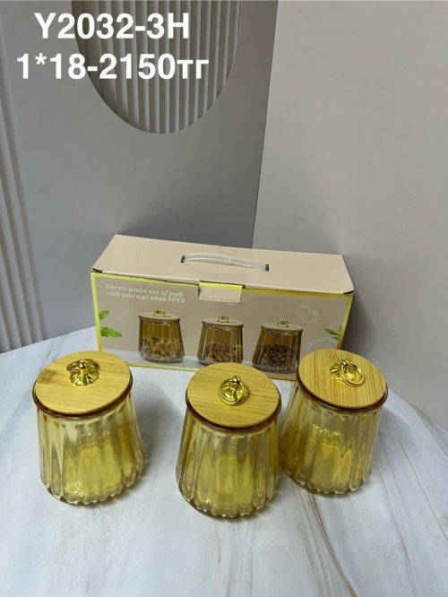 Y2032-3H Набор из трёх банок для хранения с кольцом с крышкой (1к-18шт)