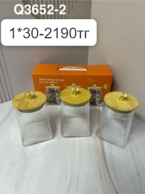 Q 3652-2 Набор из 3 банок для хранение глянцевый прозрачный (1к-30шт)