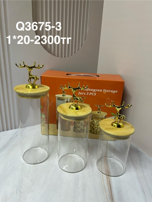 Q3675-3 Набор из 3 банок для хранение глянцевый прозрачный (1к-20шт)