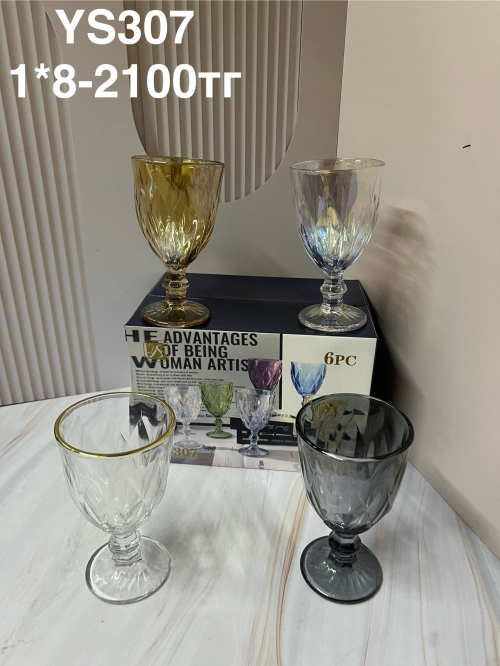 #1YS-307 Бокал разноцветные стеклянный 450мл (1кр-8шт)
