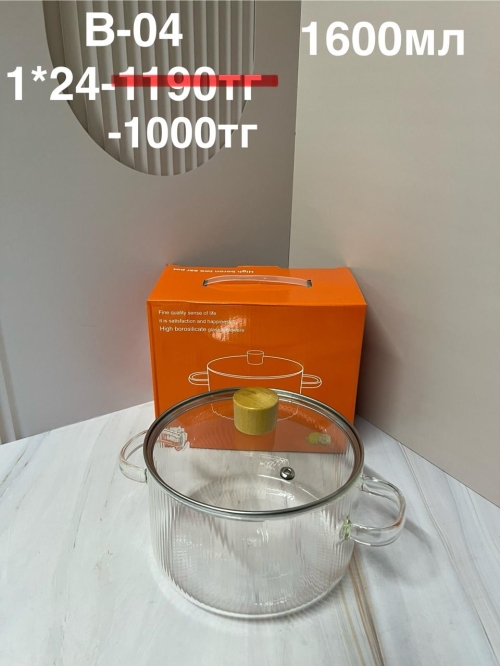 B-04 Каструлья прозрачная с ручкой огнеупорная 1600 мл (1кр-24шт) 1PCS/SET
