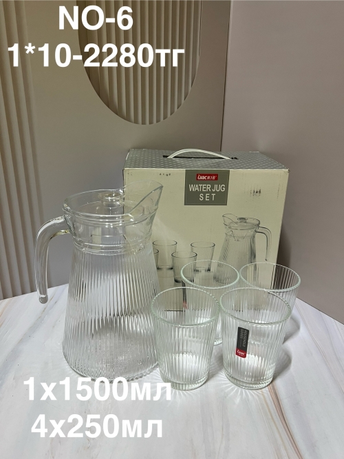 NO 6 Кувшин со стаканом стеклянная 5PCS/SET (1кр-10шт)