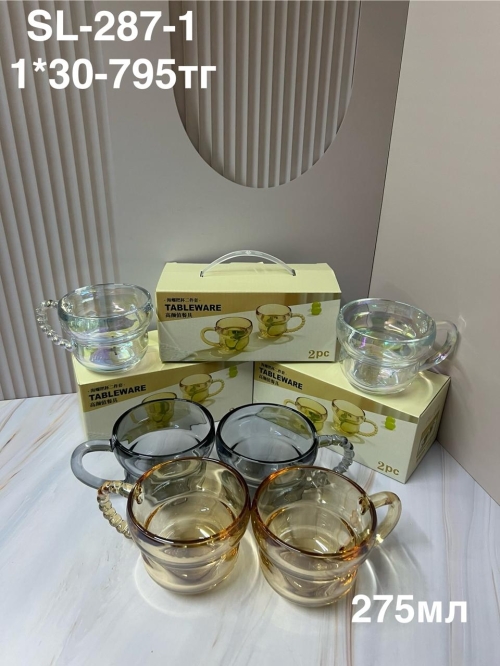 SL-287-1 Стеклянная кружка (1кр -30шт)2PCS/SET