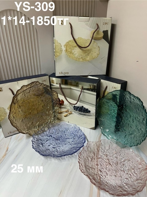 YS-309 Стеклянная тарелка разноцветная (1кр -14шт)2PCS/SET