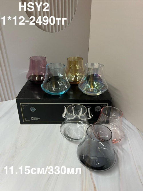 HSY2 Стаканы разноцветные стеклянный(1кр -12шт)6PCS/SET