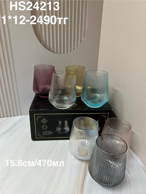 HS24213 Стеклянный стакан разноцветный с узором (1кр -12шт)6PCS/SET