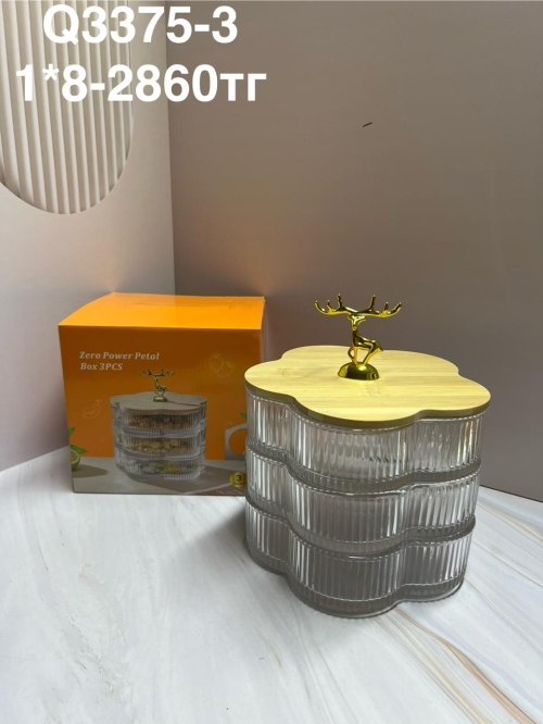 Q3375-3 Элегантная стеклянная емкость для сыпущих продукт трехяростьная (1кр-8шт)