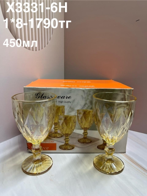 X3331-6H Бокалы стаканы с ножкой янтарьная (1кр-8шт)