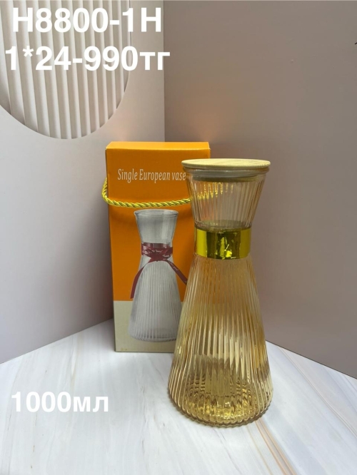 H8800-1H Стеклянная золотистая графин с крышкой (1кр-20шт)