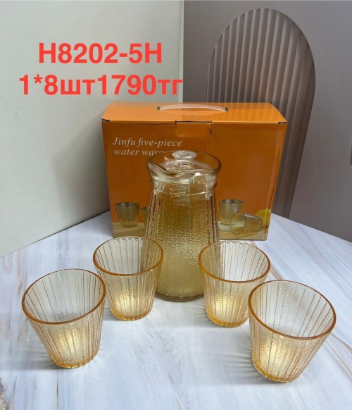 H 8202-5H Набор стаканов кувшин цвет черный(1кр-16шт)