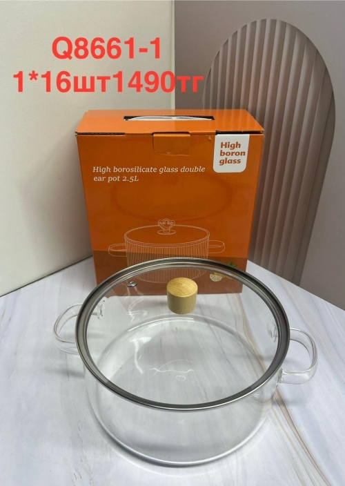 Q 8661-1 Стеклянный кастрюля обьемом 2,5 л (1к-16шт)