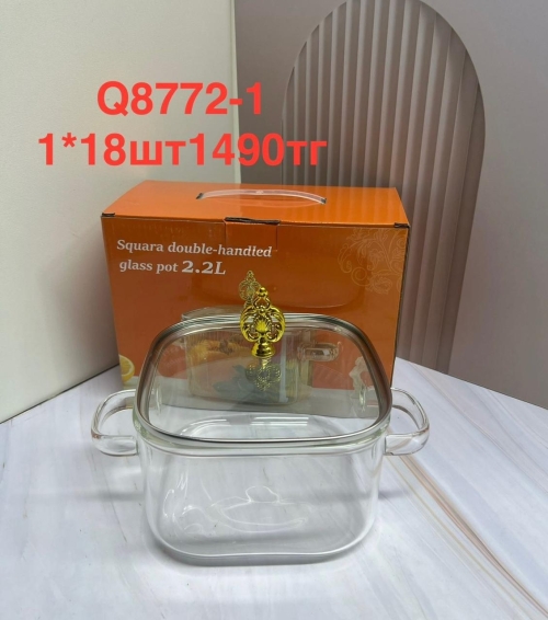Q 8772-1 Квадратный стеклянный кастрюля обьемом 2,2 л (1к-18шт)