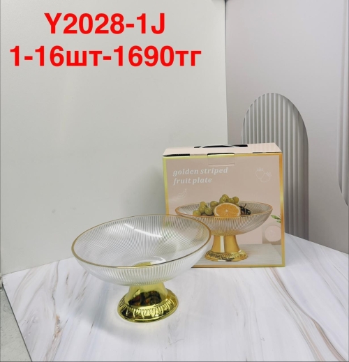 Y 2028-1J Фруктовница стеклянная с золотой ножкой (1кр-16шт)