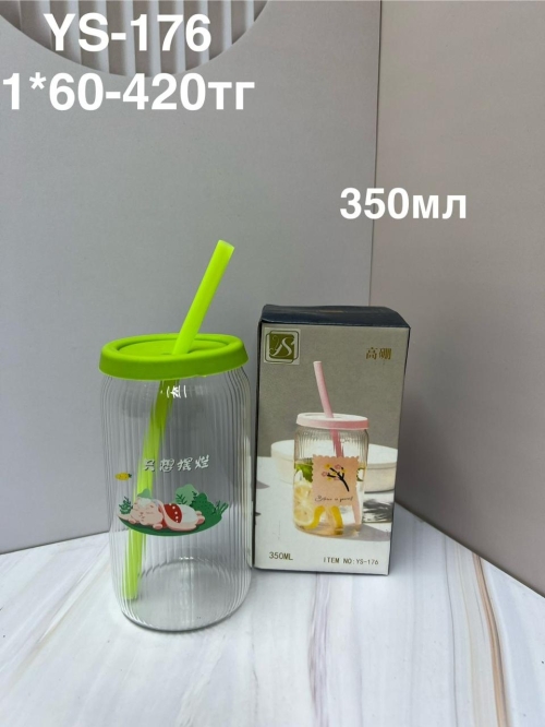 YS-176 Стеклянная узорчатая стакан с трубочкой (1кр-60шт)