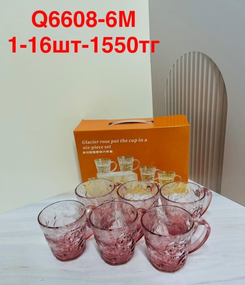 Q 6608-6M Кружка стеклянная с ручкой цветная (1кр-16шт-1550тг) 6PCS/SET