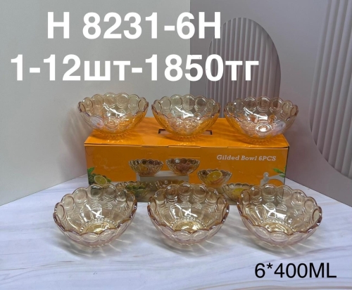 H 8231-6H Вареннитца сахрннитца с узором янтарны 6PCS/SET 400ML