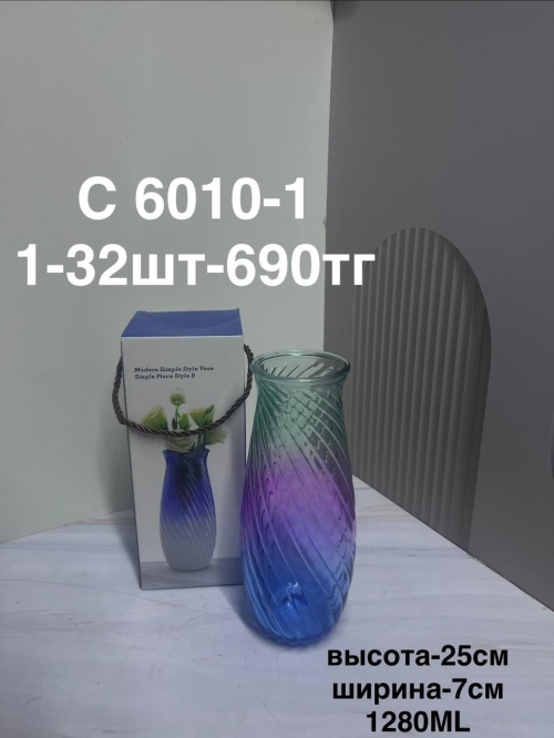 C 6010-1 Ваза цветная длинная (1кр-32шт)