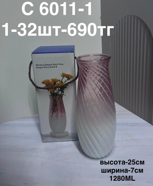 C 6011-1 Ваза цветная длинная (1кр-32шт)