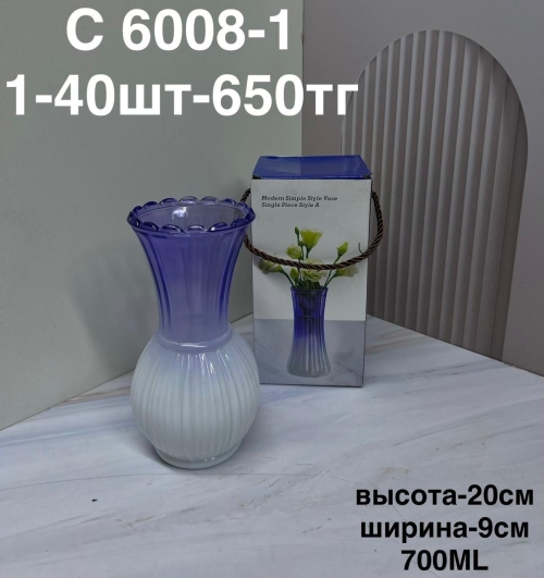 C 6008-1 Ваза узорчатая цветная (1кр-40шт)